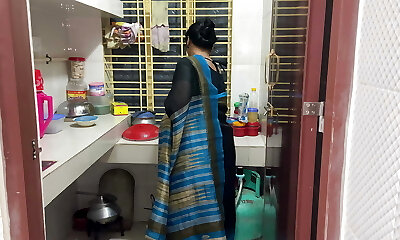 मैंने अपनी चाची को रसोई में अकेले खाना बनाते देखा, मैंने उसे गले लगाया और चोदना शुरू कर दिया