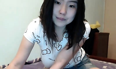 कोरियाई वयस्क कैम लड़की ताने दिलेर स्तन और उसके पैर फैला