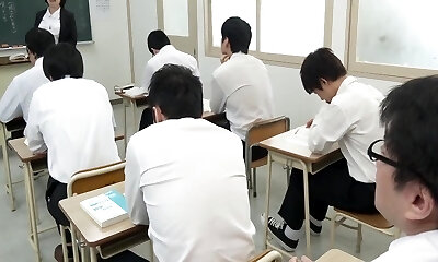Japanese instructor gives head and fucks with pervy student in the classroom